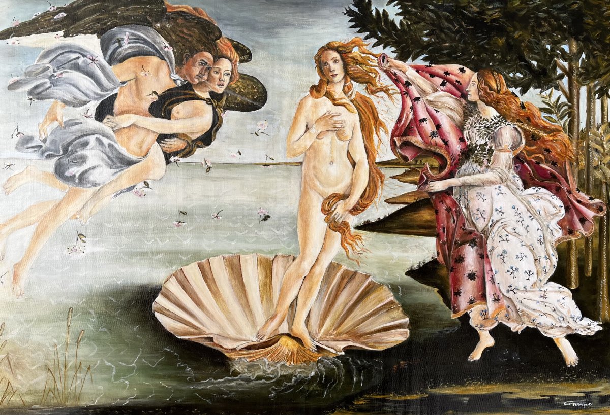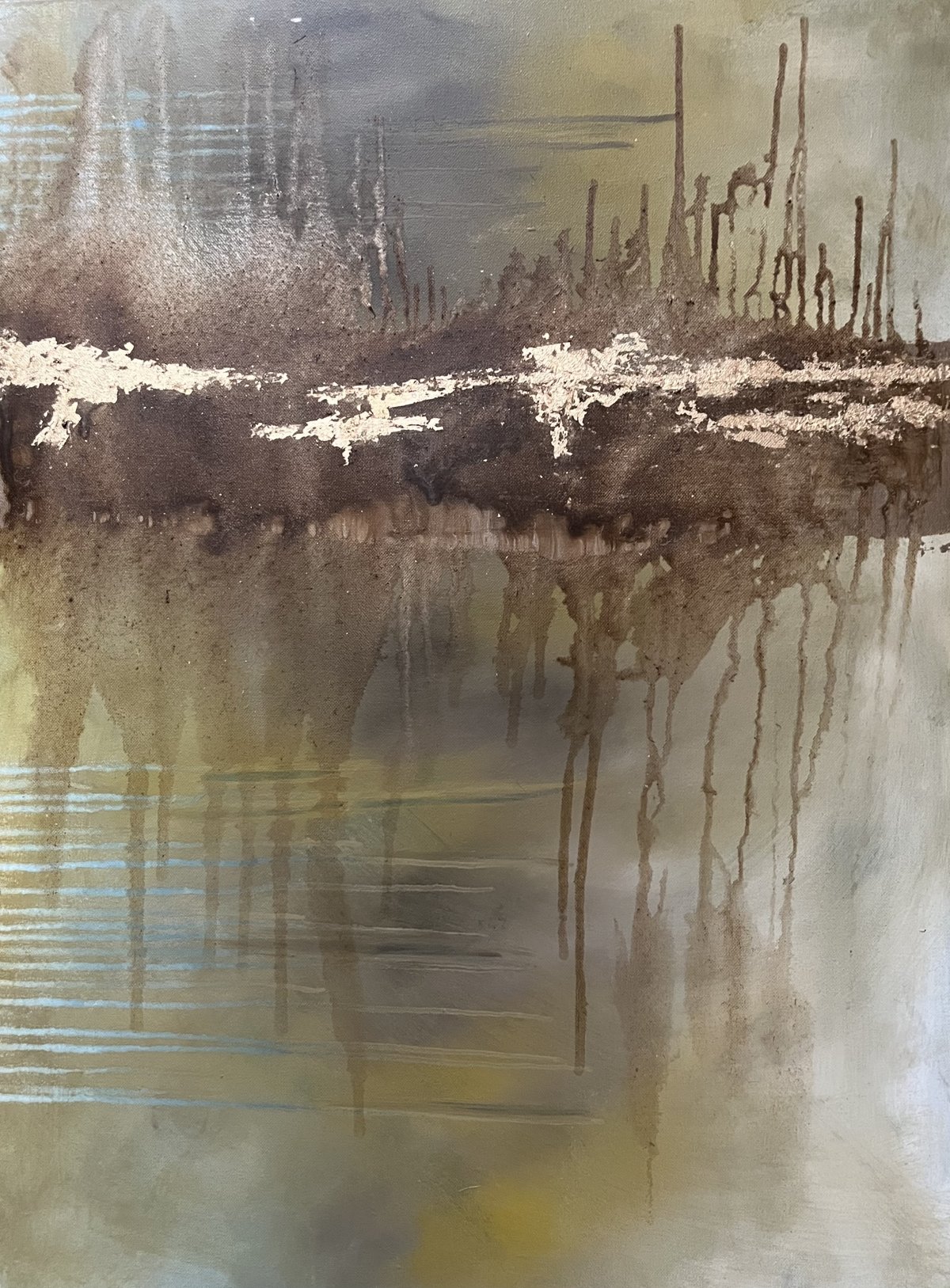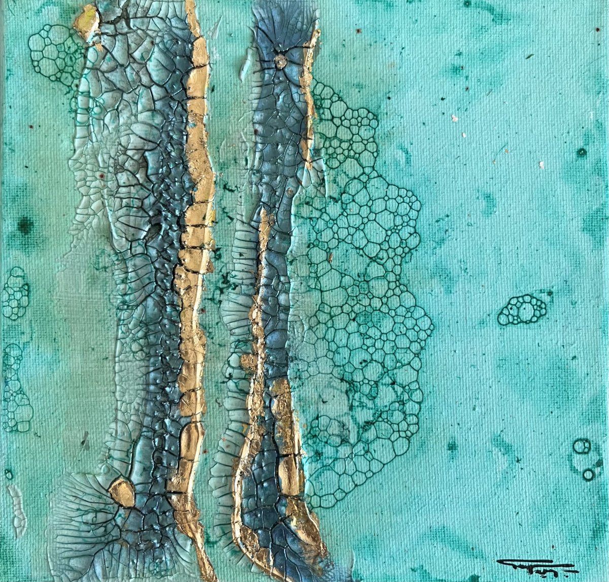 RIVIERE SOUTERRAINE -1mx1m technique mixte feuilles d'or 22 carats et bulles de savon