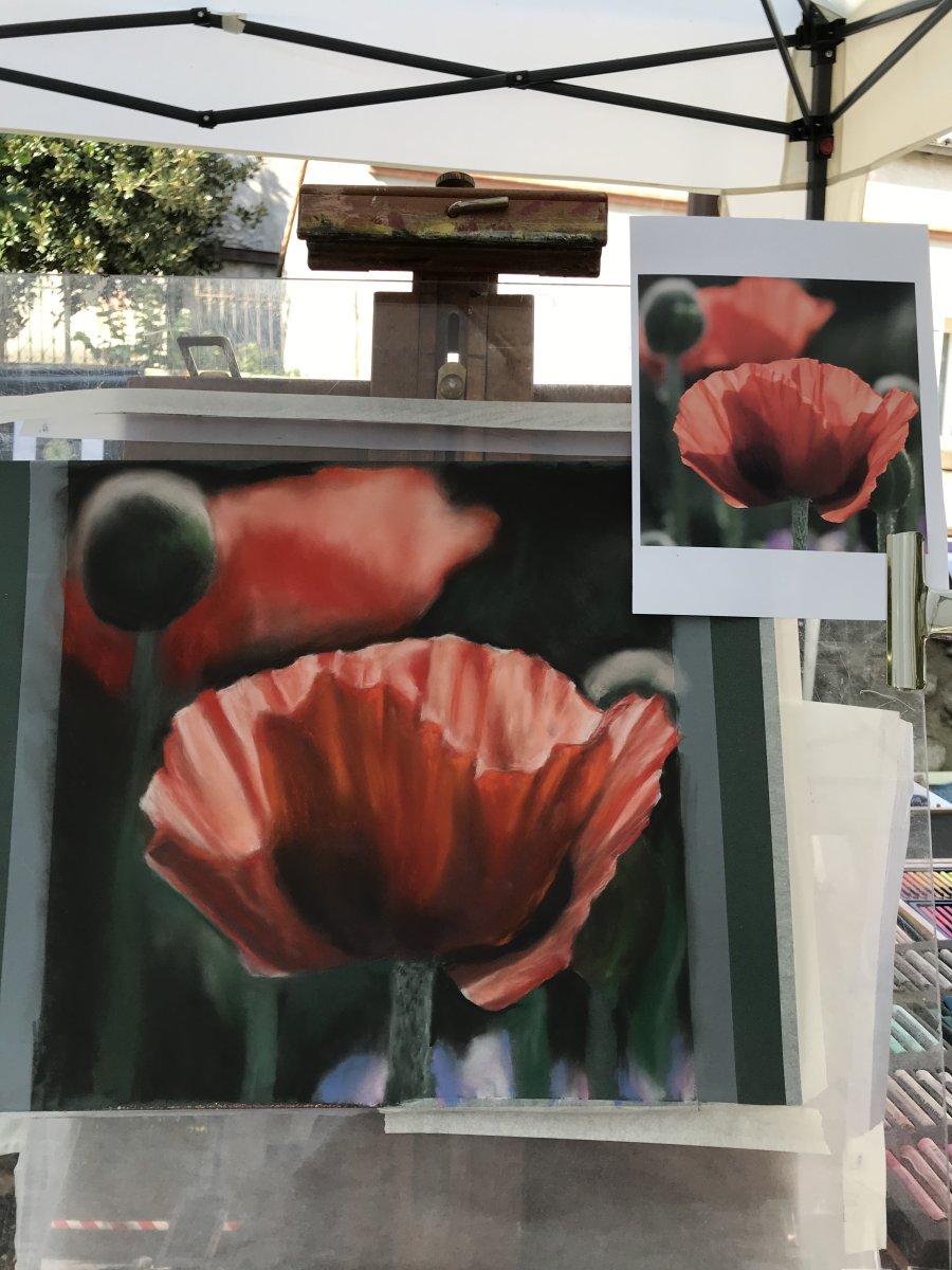 Il s’agit de bâtons d’un mélange de craie, d’un liant, qui est surtout très riche en pigments. On travaille ou dessine en appliquant cette craie que l’on étale avec des estompes (petit bâton de buvard) les doigts et une gomme. Chaque couleur et nuance a sa craie, d’où le besoin d’avoir un grand choix de couleurs.  LE PASTEL C’EST L’ART DE CARESSER LA DOUCEUR